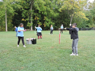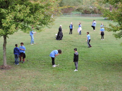 Students also played games and made crafts that were popular around the time the bridge was built. Anne Rattine, schoolmarm at the Great Western Schoolhouse on the campus of Ohio University Eastern west of St. Clairsville, wore historic clothing and taught the students how to play many old-fashioned games.