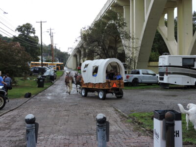 The event featured covered wagon rides provided by Patty and Dick Gummere and Bruce Vannest. The wagons were pulled by a pair of mules.