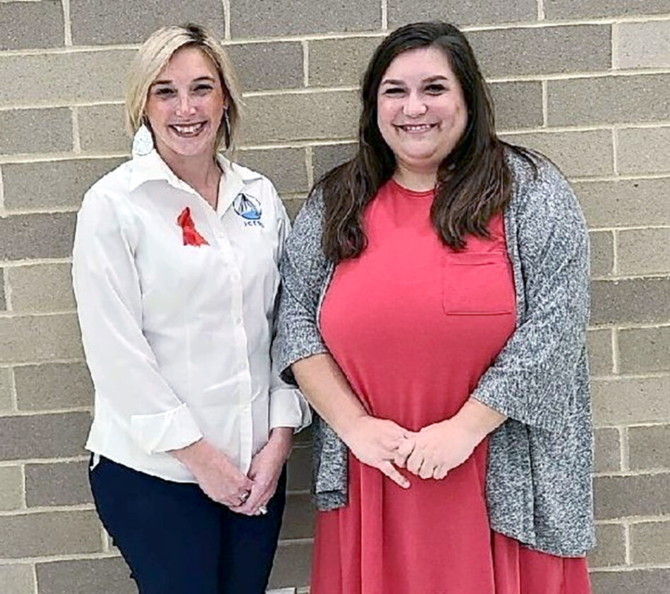 Photo Provided Rebecca Agostini, right, is one of three Harrison Hills City School District educators to receive a Best Practice Grant from the Jefferson County Educational Service Center. Presenting her award is Amber Fomenko, director of special education for the JCESC. Misty Barker and Susan Macenzak also received awards.