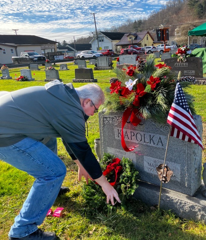 Photos Provided Jimbo Kapolka places a wreath on his father’s grave.