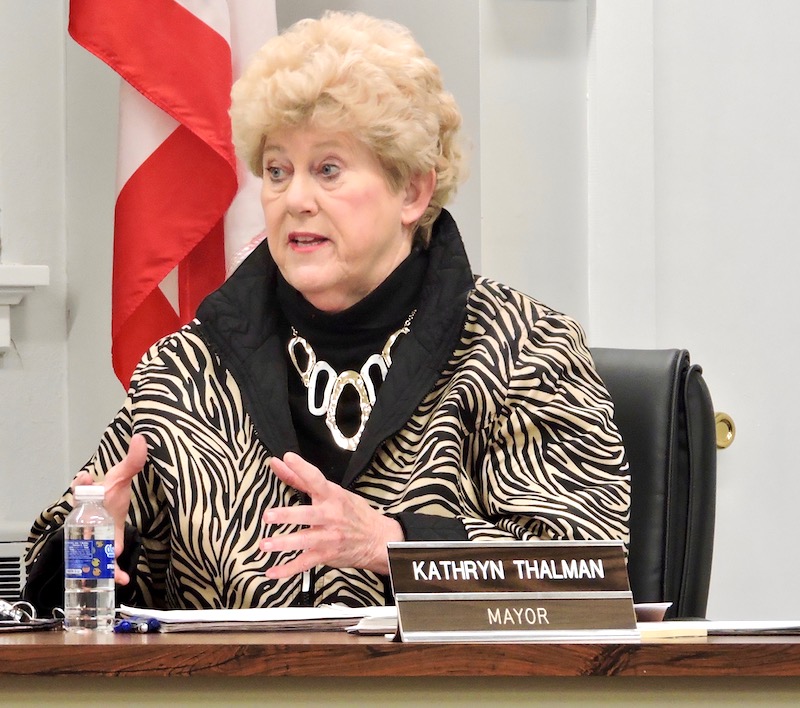 T-L Photo/KAILEY CARPINO St. Clairsville Mayor Kathryn Thalman discusses several recent water breaks and the need for an additional dump truck to make repairs more efficient.