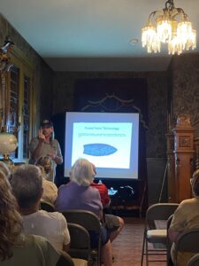 Boilegh presented “The First Ohions: Life at the End of the Ice Age” to a room of audience members interested in archaeology. He drew attention from the audience by using a slideshow for a visual presentation and showing prehistoric items and tools.