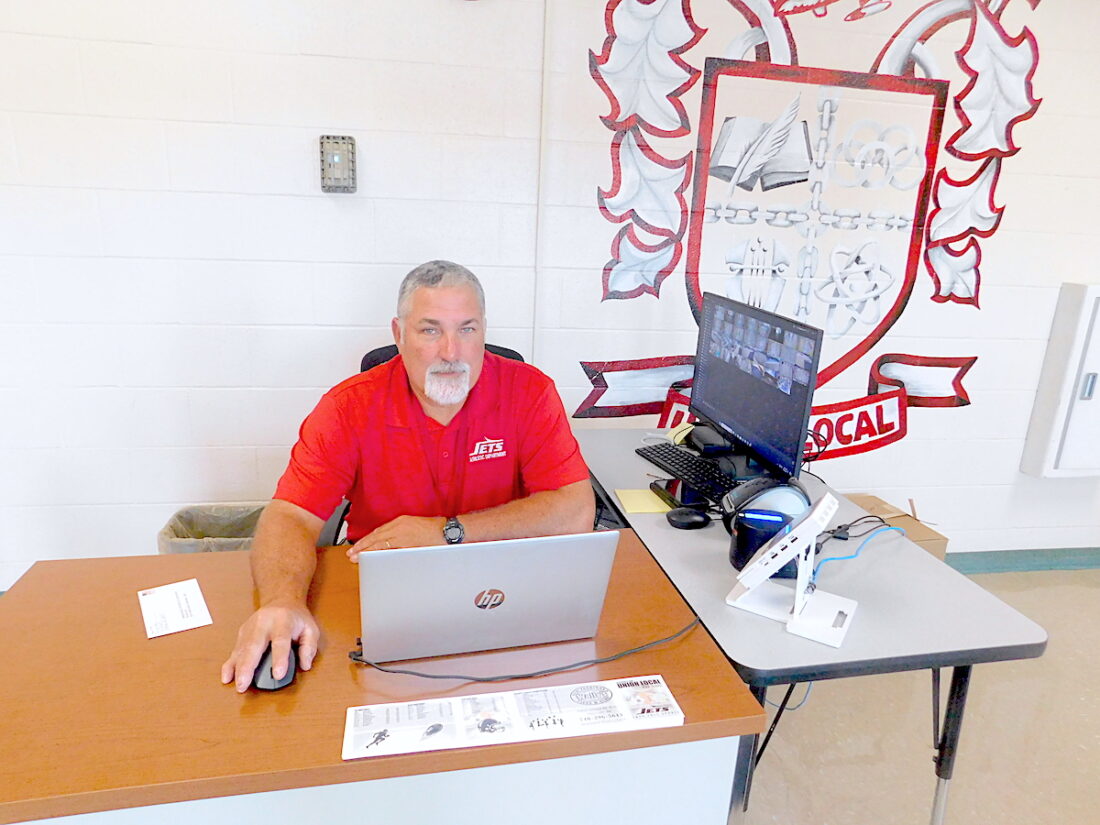 T-L Photo/JOSIE BURKHART When visitors enter Union Local schools, security personnel will scan their identification, ensuring the guest is welcome to visit. Here, Security Coordinator Mike Menges staffs the entrance.