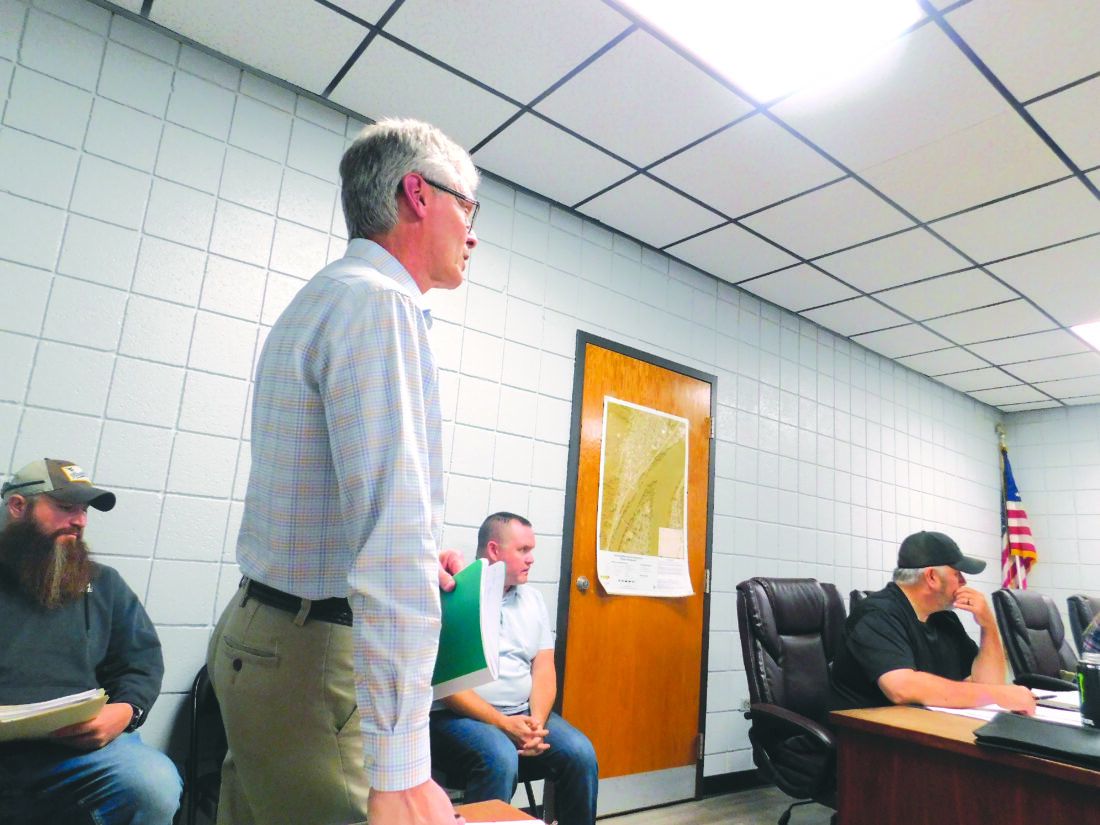 T-L Photo/JOSIE BURKHART Pastor David Demarest from Kirkwood Presbyterian Church addresses Bridgeport council Tuesday evening about possibly acquiring the church property and building after its last service in 2025, inviting council to hold its next meeting at the church to check it out.