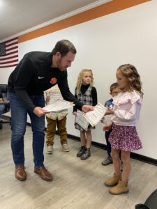 Mehlman then presented the awards to eight students, five of whom were at the meeting. They included Niko Yager, Emma Stepp, Kolter Klug, Khloe Kernik and Lyra Elliot.