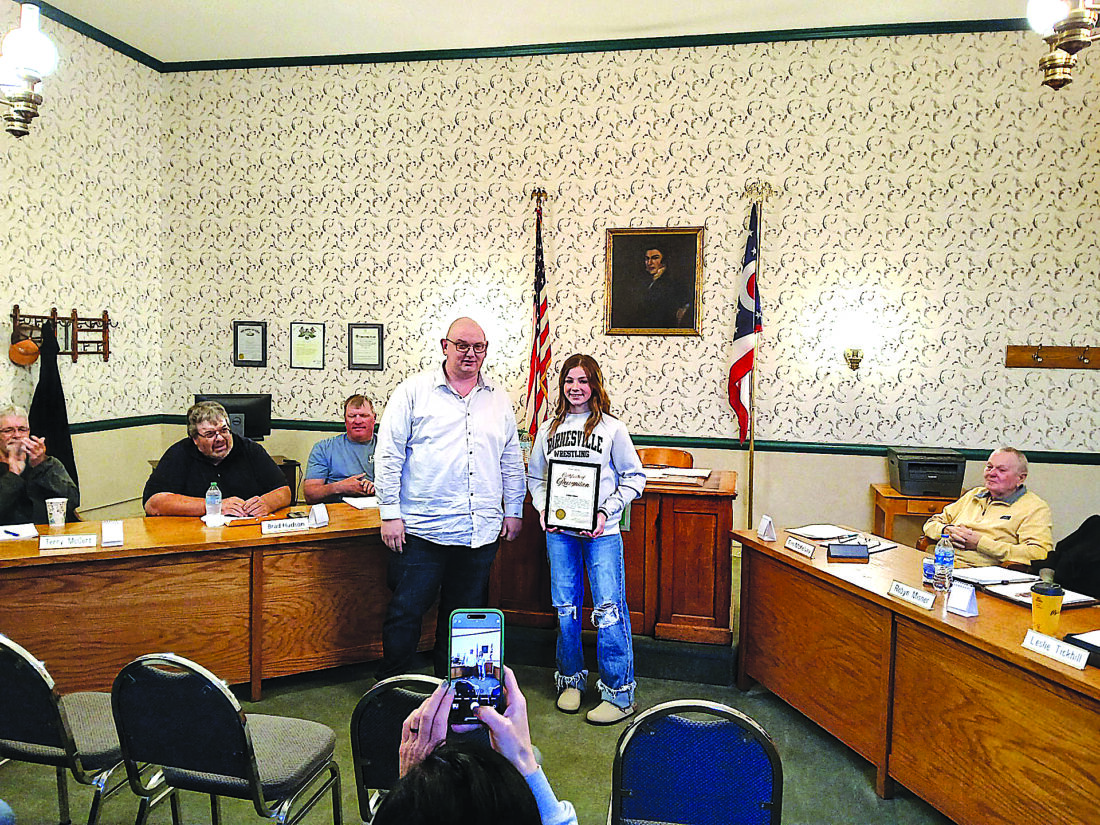 Also during the meeting, Hershberger presented Barnesville junior high wrestler Ladyn Hines with a certificate of recognition for recently winning the Junior High Girls Wrestling State Championship at the 2025 OAC Ohio Wrestling State Championship, making her a five-time OAC girls state champion.
