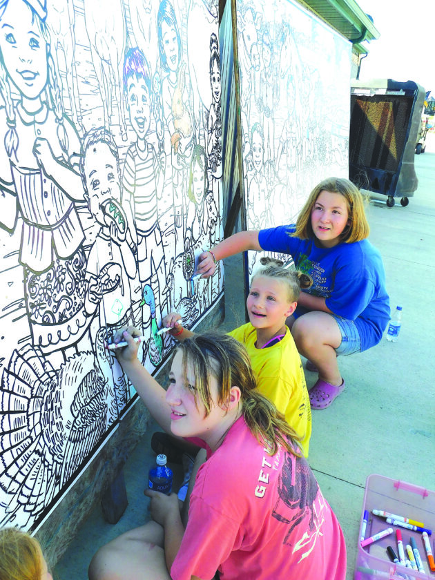 T-L File Photo Jada Clark, from left, of Lamira, C.C. Brocklehurst of Warnock and Erica Falcone of Centerville join in coloring at a past Belmont County Fair.