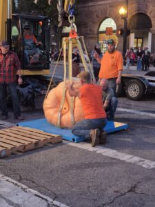 “I’m still growing outside, so you have to fight the water issue all the time,” he continued. “So getting that water dialed in where the plant is growing well, but the pumpkin’s growing better. So you don’t want it so wet that the plant’s really growing and the pumpkin’s just growing a little bit, so controlling the water is a big issue for us. … It’s just work — and knowing what the plant needs.”