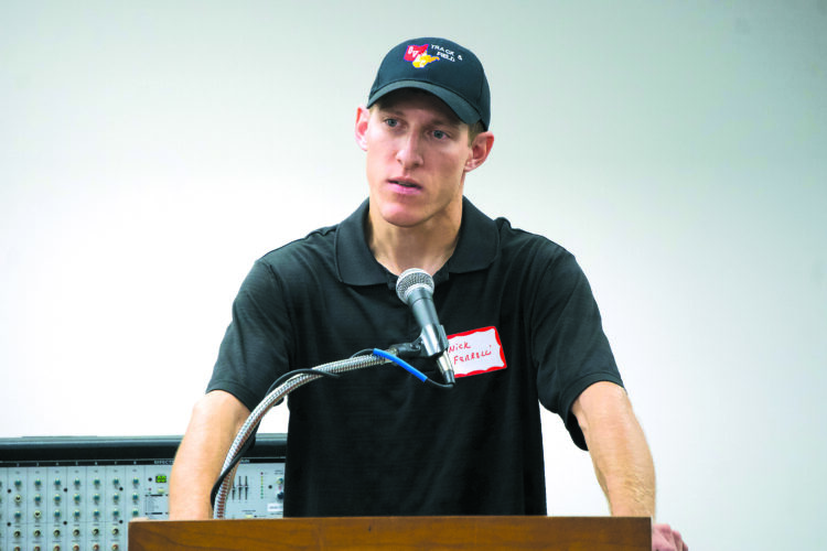 Candidate for Shadyside Mayor Nick Ferrelli speaks to residents at the Visions of Shadyside meet the candidates event about how he believes the village’s progress halted when he stepped down from council in 2023.