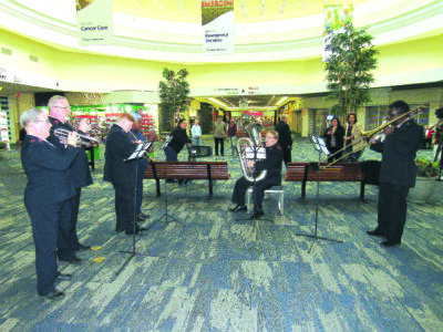 As part of the kick-off the army’s brass band played Christmas songs as shoppers stopped to watch and listen. Mall Manager George Diab gave the ceremonial first donation to the red kettle nearby. Higgins said the army hopes to raise $95,000.