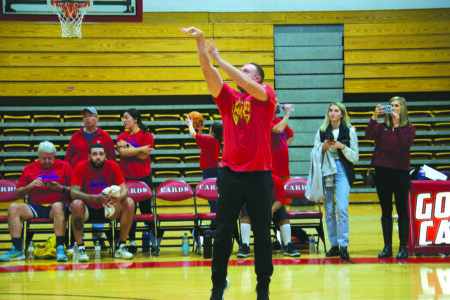 - Union Local School District athletic director Nick Nardo tries his luck at a three point challenge.