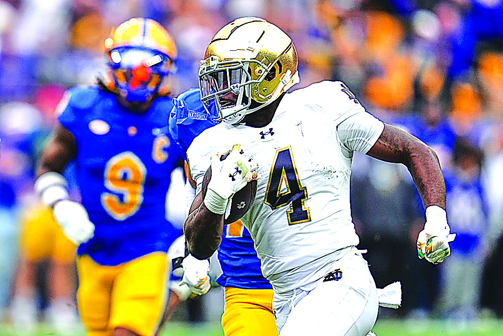He ranks third in the Football Bowl Subdivision with 113.5 yards rushing per game, 17 total touchdowns and 1,409 scrimmage yards — the only player to appear in the top three of each category. He’s also the first player in Notre Dame’s storied history to produce multiple TD runs of 90 or more yards, a 98-yarder against Indiana in the first round of last year’s playoffs and a 94-yarder against Boston College earlier this season.