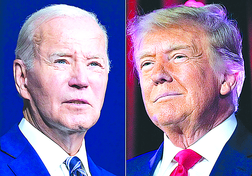 In this combination of photos, President Joe Biden speaks on Aug. 10, 2023, in Salt Lake City, left, and former President Donald Trump speaks on July 8, 2023, in Las Vegas. (AP Photo)