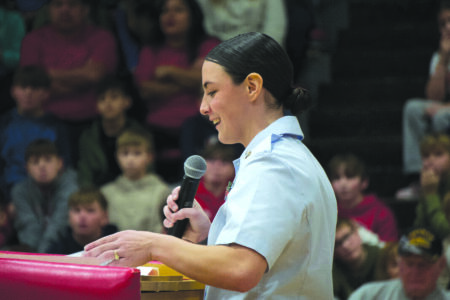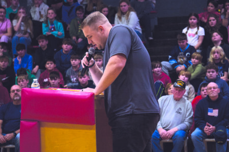 St. Clairsville High School, Middle School, and Elementary students, veterans, and their families packed the school’s gymnasium as U.S. Air Force veteran Mike Slenski spoke to attendees about the importance of respecting the American flag.