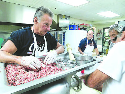T-L File Photo Former Belmont County Common Pleas Judge Frank Fregiato volunteers at the Sons of Italy to make the organization’s trademark sausages for the Undo’s Upper Ohio Valley Italian Heritage Festival in 2021.