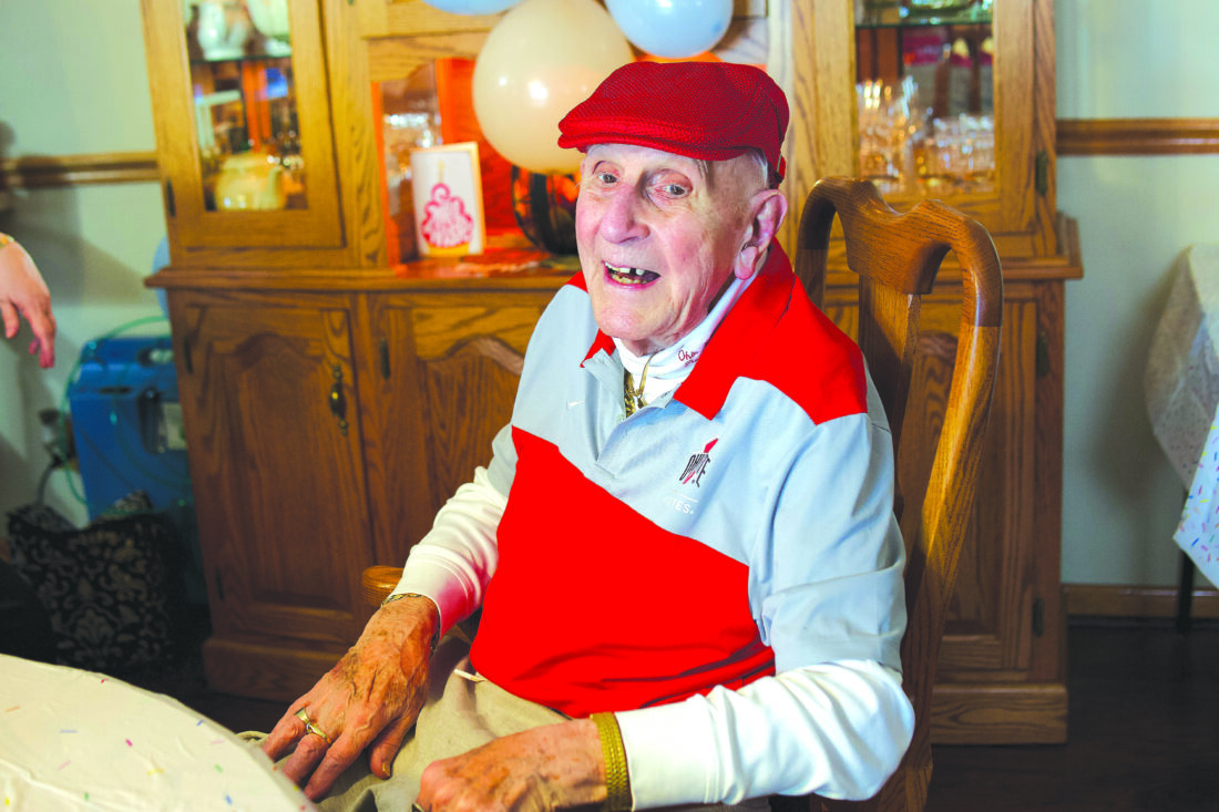 T-L Photo/GAGE VOTA Longtime Yorkville village council member Ronald Emerson smiles during his 95th surprise birthday party this past September at his home.