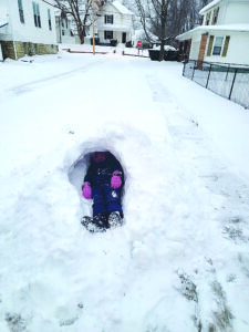 - Photo Provided Alayah Jones tries to dig her way out of the snow in her driveway.