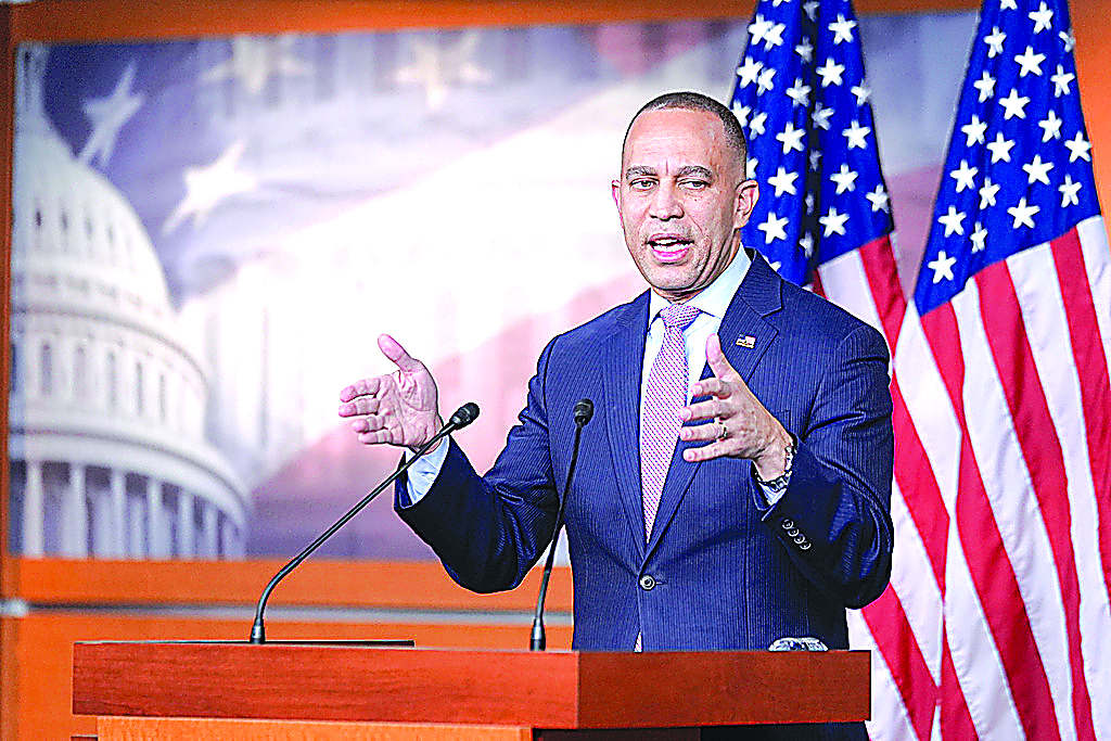 House Minority Leader Hakeem Jeffries, D-N.Y., speaks during a news conference on Capitol Hill, Monday, Jan. 5, 2026, in Washington. (AP Photo/Mariam Zuhaib)