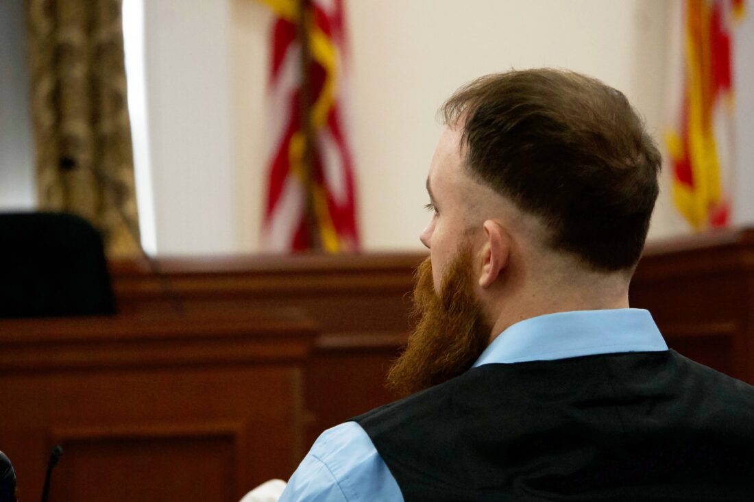 T-L Photo/GAGE VOTA Andrew Isaac Griffin, who is accused of the double homicide of Thomas and Angela Strussion, appears in Belmont County Common Pleas Court for a pre-trial hearing.