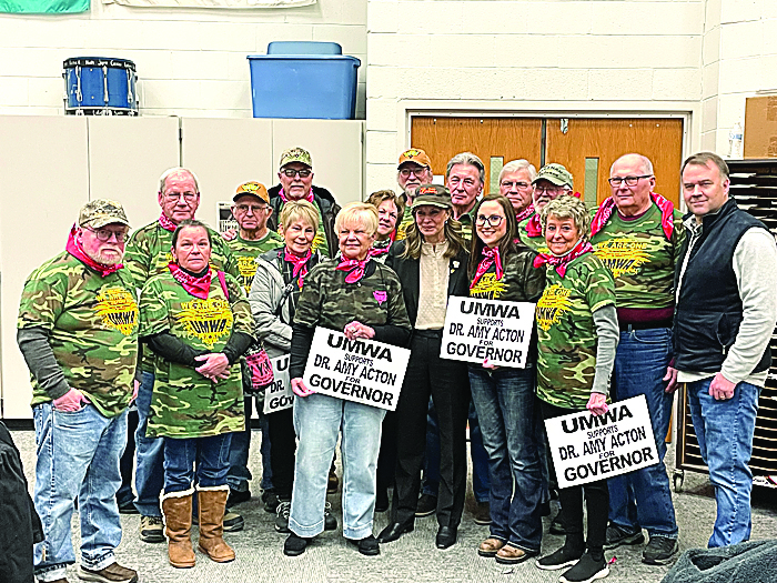 Photo by Julie Stenger Mineworkers from throughout the Ohio Valley were among those who attended a meet-the-candidate event at Buckeye Local High School in Rayland Saturday evening. Dr. Amy Acton, Democratic candidate for Ohio governor, was among those who participated.