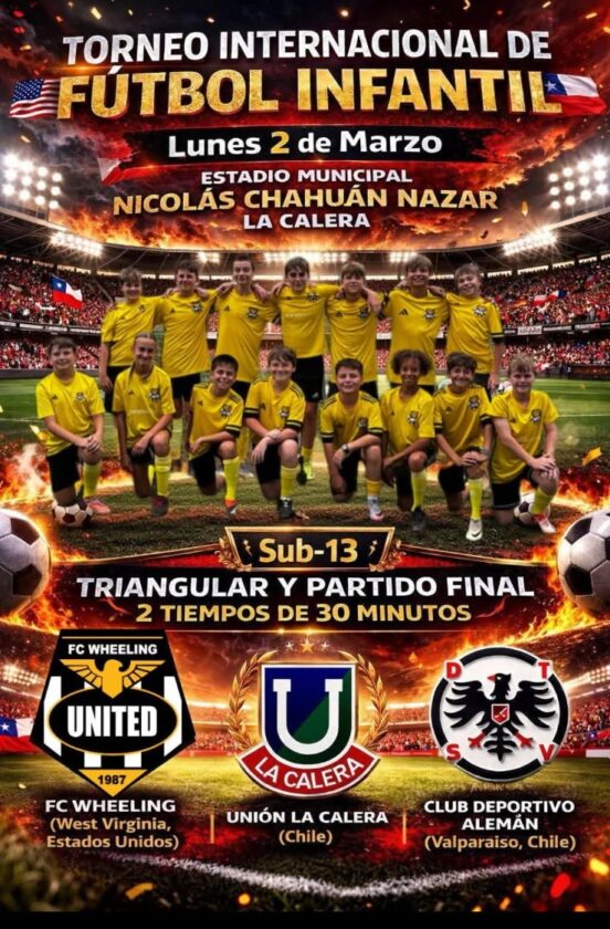 A flyer announcing the FC Wheeling first scheduled game in a tournament in Chile was released by Internacional de Fútbol Infantil.