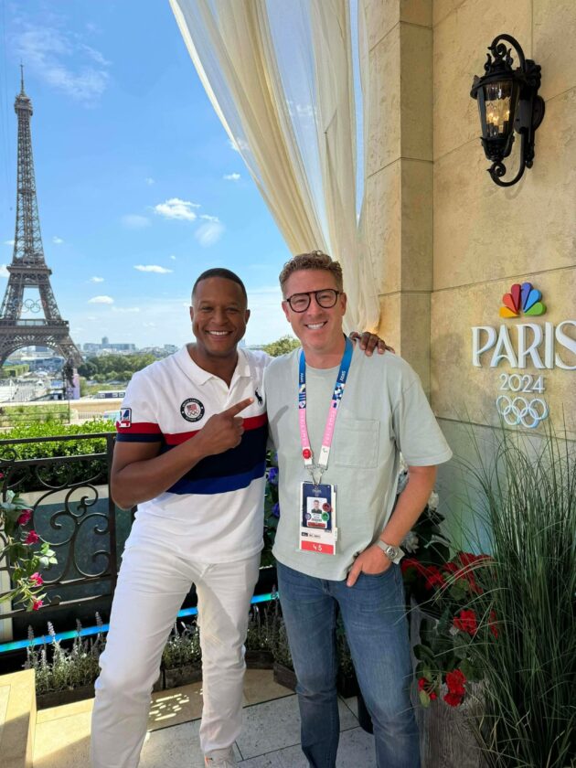 Wintersville native Michael Burns, right, with "Today" host Craig Melvin at the 2024 Olympics in Paris, is getting a close-up view of the 2026 Olympic Winter Games in Milan and Cortina, Italy, as he works with the production team with the “Today” show from Feb. 6-22. (Photo provided)