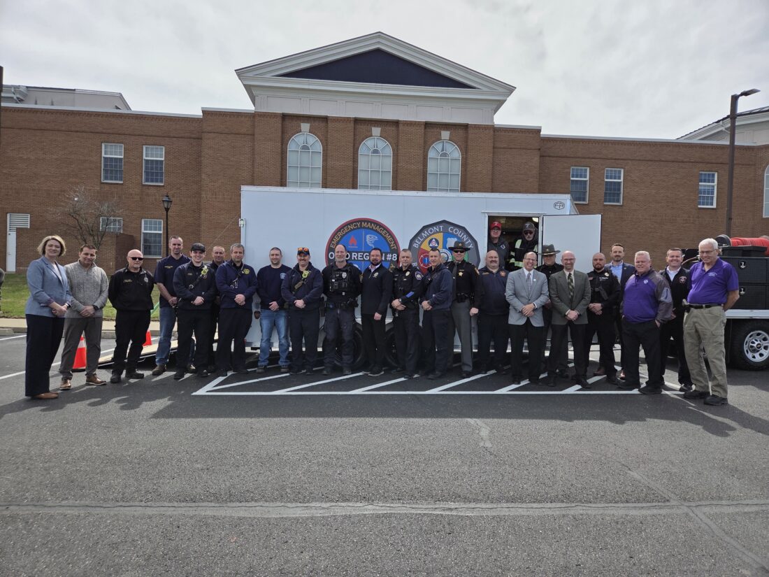 On Thursday afternoon, all fire, EMS and police entities met with Belmont County Commissioners, Ohio Sen. Brian Chavez, R-Marietta, and various area school superintendents at the East Central Ohio Educational Resource Center to celebrate the new trailer.