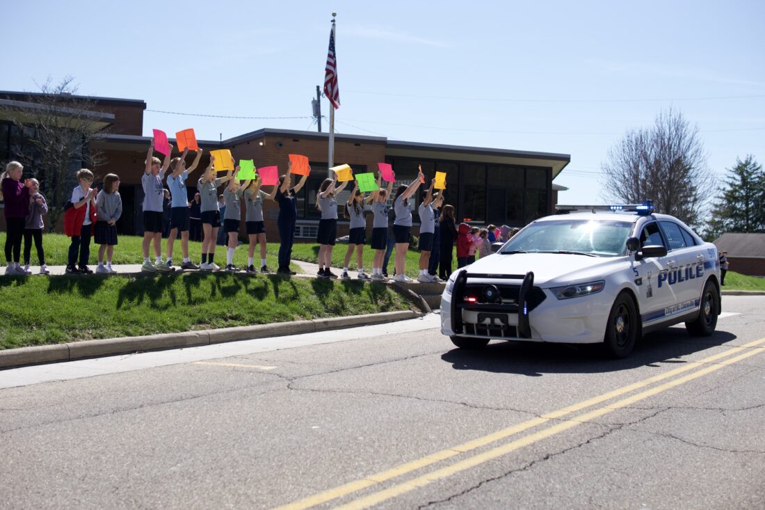 Continuing past St. Mary’s, residents lined Main Street to greet Clark. The parade concluded at St. Clairsville High School, where the entire staff stood on the school’s sidewalk and waved while the St. Clairsville High School Band performed.