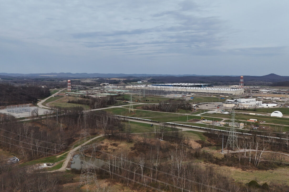 The Portsmouth Gaseous Diffusion Plant, a decommissioned uranium enrichment plant, is visible after the U.S. Department of Energy announced a new data center at the site Friday, March 20, 2026, in Piketon, Ohio. (AP Photo/Joshua A. Bickel)