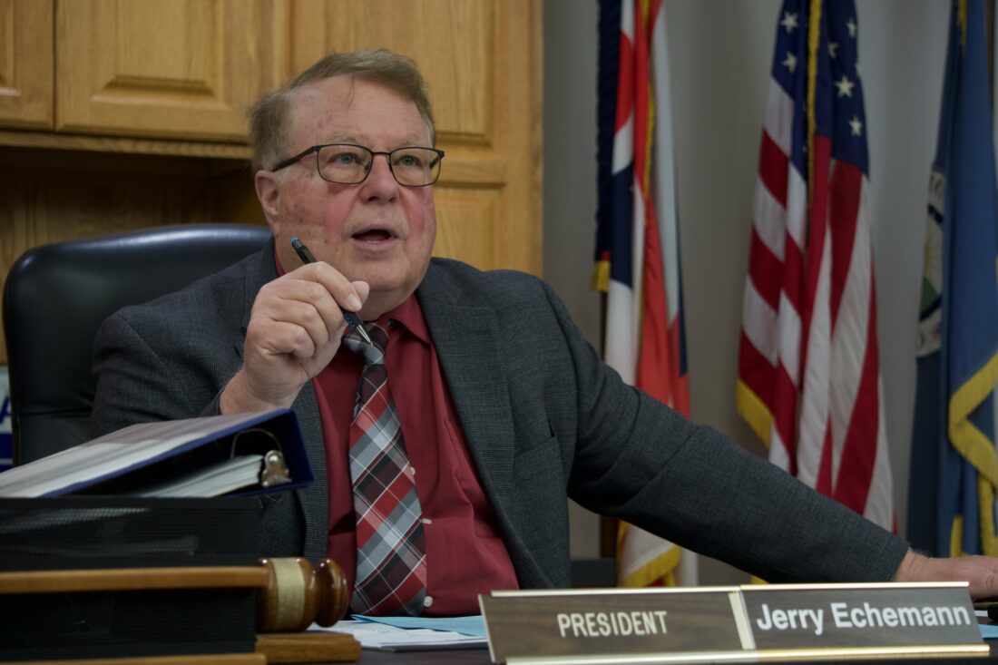 T-L Photo/GAGE VOTA Belmont County commissioner Jerry Echemann approves a memorandum of understanding between Belmont County and the village of Barnesville.