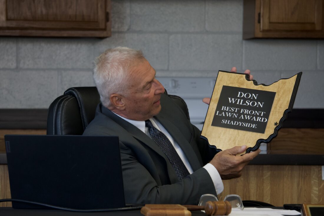T-L Photo/GAGE VOTA Shadyside mayor Mike Meintel announced the Don Wilson Best Front Yard Award competition in hopes to have residents take pride in their properties.