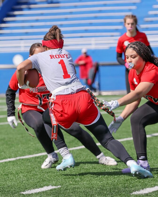 “The girls have been working hard and learning the game every day,” Courtney Cook said. “We could not pass up this amazing opportunity to bring flag football to St. Clairsville.”
