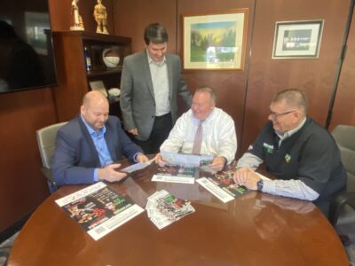 Photo by Derek Redd From left, Brian Clutter, operations manager for The Intelligencer and Wheeling News-Register; James Spanner, general manager of The Intelligencer and Wheeling News-Register; WVU Medicine North Region President Douglass Harrison; and Joe Lovell, special events coordinator for The Intelligencer and Wheeling News-Register, go over preparations for the Ogden Newspapers Wellness Weekend presented by WVU Medicine.