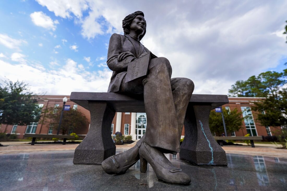 A statue of Rosalynn Carter sits in front of the Health and Human Sciences Complex on the campus of Georgia Southwestern State University, Monday, Nov. 20, 2023, in Americus, Ga. Rosalynn Carter, the closest adviser to Jimmy Carter during his one term as U.S. president and their four decades thereafter as global humanitarians, died Sunday, Nov. 19, 2023. She was 96. (AP Photo/Mike Stewart)