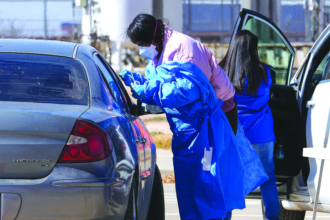 FILE - A health worker administers a measles test on Fernando Tarin, of Seagraves, Texas, at a mobile testing site outside Seminole Hospital District, Friday, Feb. 21, 2025, in Seminole, Texas. (AP Photo/Julio Cortez, File)