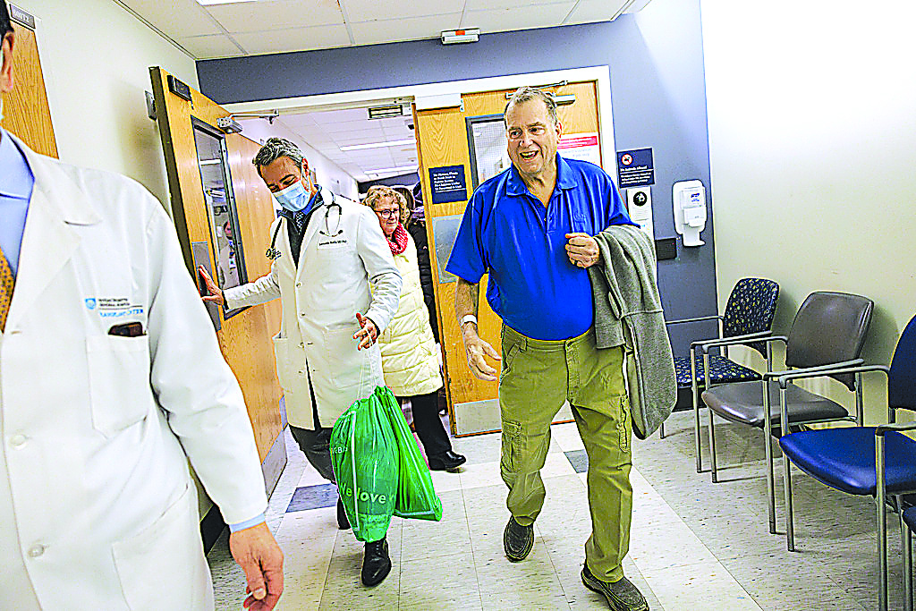 FILE - This image provided by Massachusetts General Hospital shows Tim Andrews smiling as he leaves Massachusetts General Hospital in Boston on Feb. 1, 2025. (Kate Flock/Massachusetts General Hospital via AP, file)