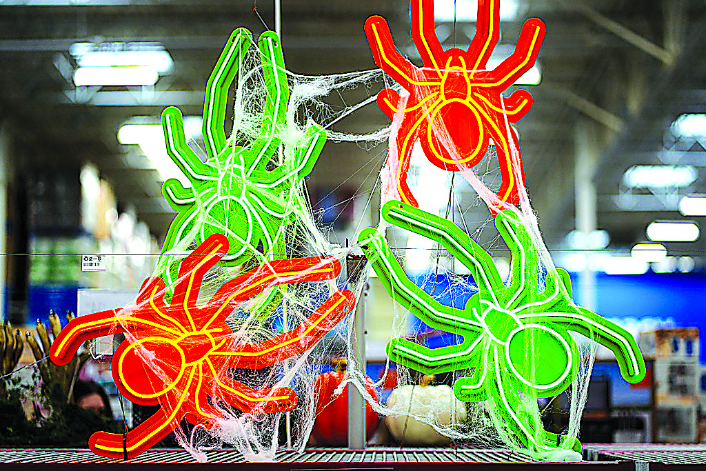 Halloween decorations are on display at a Sam's Club, Wednesday, Sept. 24, 2025, in Bentonville, Ark. (AP Photo/Charlie Riedel)