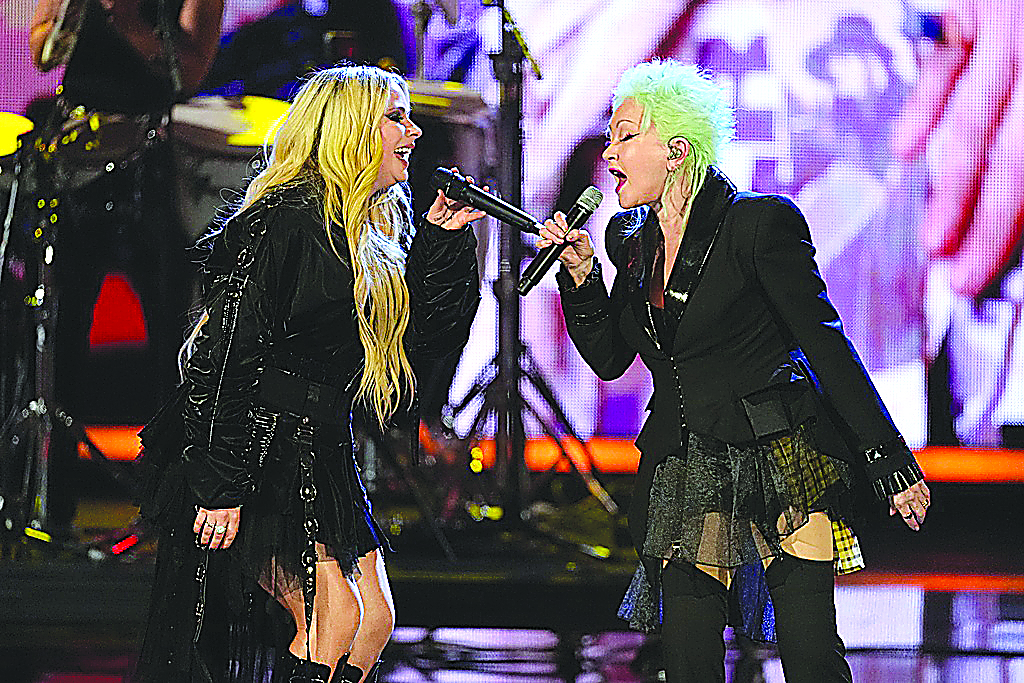 Avril Lavigne, left and Cyndi Lauper perform during the 2025 Rock and Roll Hall of Fame Induction Ceremony on Saturday, Nov. 8, 2025, at L.A. Live in Los Angeles. (AP Photo/Chris Pizzello)
