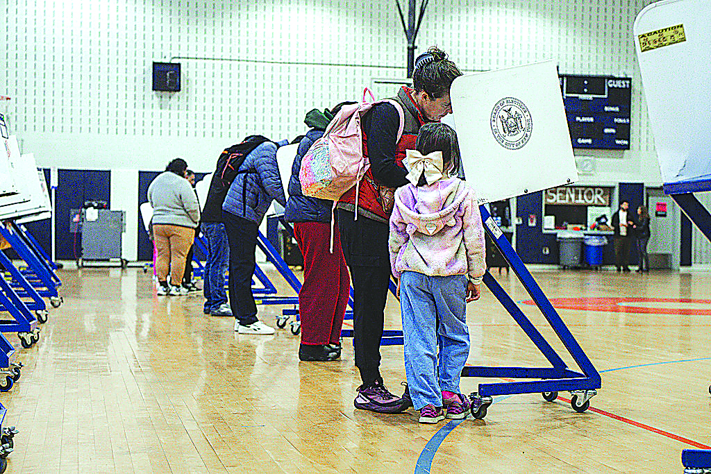 People vote on Election Day on Tuesday, Nov. 4, 2025, in New York. (AP Photo/Olga Fedorova)