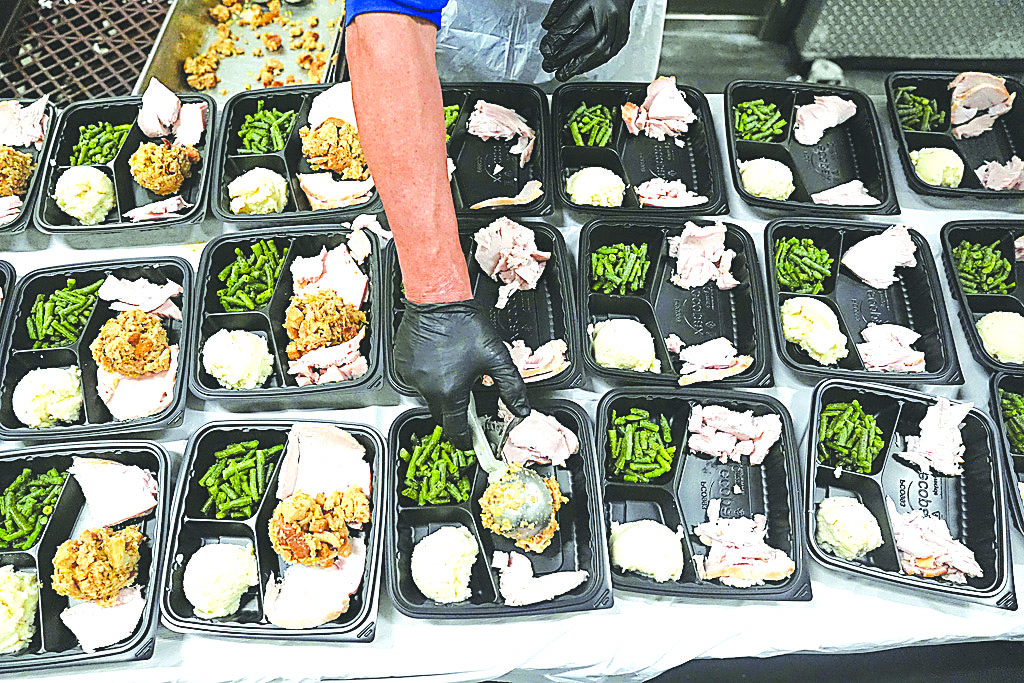 A volunteer prepares meals at the Philabundance Community Kitchen in Philadelphia, Thursday, Oct. 30, 2025. (AP Photo/Matt Rourke)