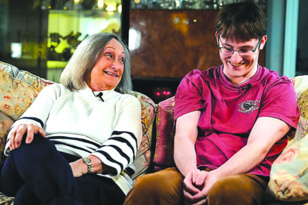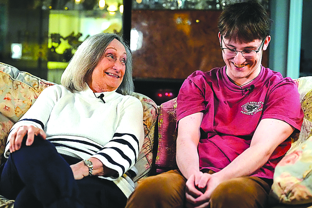 CORRECTS FIRST NAME TO DIANE - Diane West sits with her grandson Paul Quirk as they speak to a reporter, Tuesday, Dec. 2, 2025, in Marietta, Ga. (AP Photo/Mike Stewart)