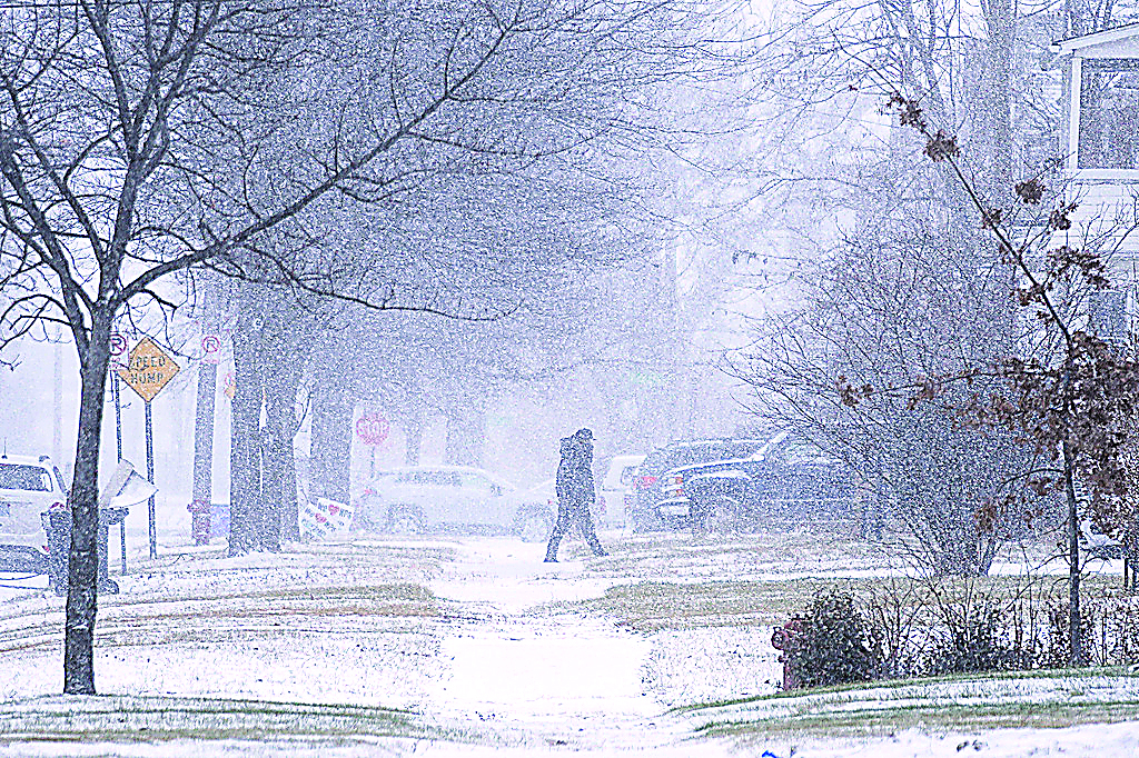 A person walks across the street after a winter storm system hit South East Michigan, Monday, Dec. 29, 2025, in Detroit. (AP Photo/Ryan Sun)