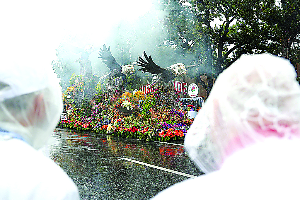 Hundreds of thousands of people gather along the nearly six-mile route in Pasadena, where the two-hour parade kicked off. Millions more watch on national television. Organizers at the Pasadena Tournament of Roses, the group that organizes the parade ahead of the Rose Bowl college football game, said they made only small changes to accommodate the weather, such as the tops being up on convertibles carrying grand marshal Earvin “Magic” Johnson and other VIPs.