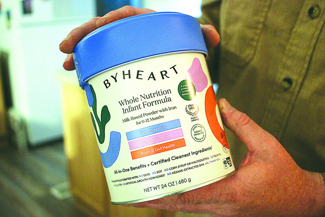 FILE - A container of ByHeart baby formula, which was recently recalled by ByHeart, in Flagstaff, Ariz., on Wednesday, Nov. 12, 2025. (AP Photo/Cheyanne Mumphrey, File)