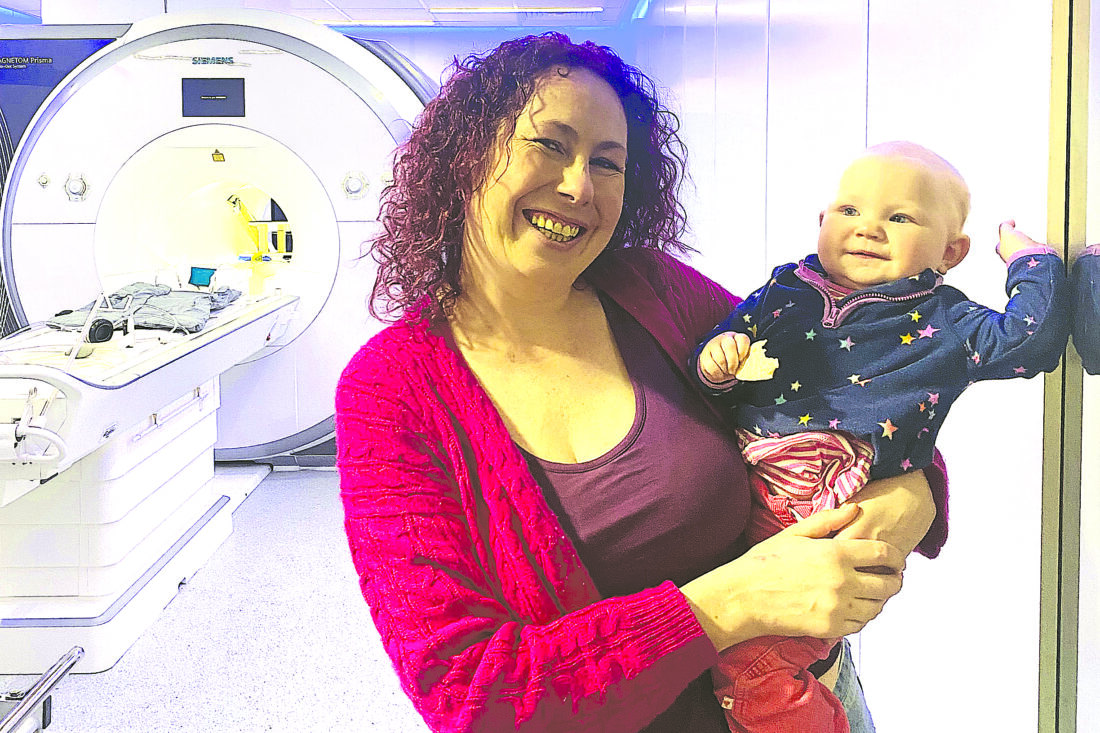In this undated photo, Baby Blaise attends her 9-month Foundcog scan with her mother Mary at Trinity College Institute of Neuroscience in Dublin, Ireland. (Cusack Lab via AP)
