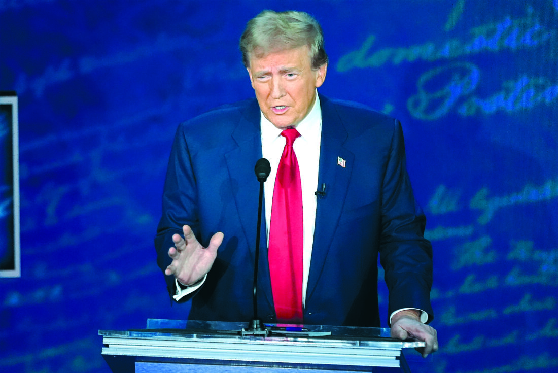 Republican presidential nominee former President Donald Trump speaks during a presidential debate with Democratic presidential nominee Vice President Kamala Harris at the National Constitution Center, Tuesday, Sept.10, 2024, in Philadelphia. (AP Photo/Alex Brandon)