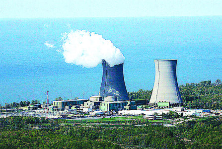 FILE-This aerial view shows the Perry Nuclear Power Plant on the shores of Lake Erie in North Perry, Ohio, May 20, 2005. (AP Photo/Mark Duncan, File)