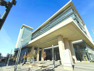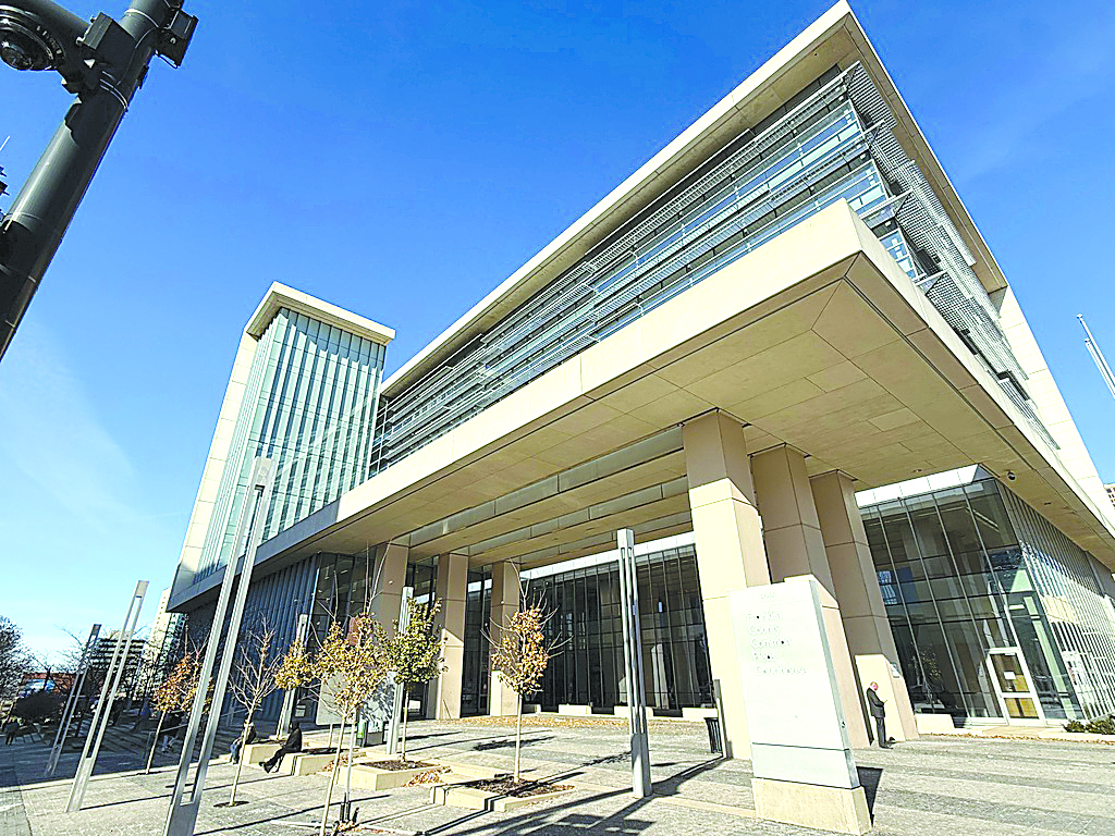 A person stands outside of the Franklin County Common Pleas Courthouse on Thursday, Nov. 13, 2025, in Columbus, Ohio. (AP Photo/Patrick Aftoora-Orsagos)