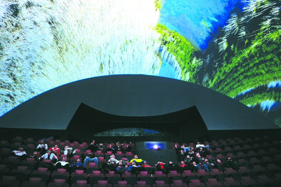 Audience members watch "Ohio: Wild at Heart" that features the state's top-rated park system to highlight wildlife conservation efforts and the restorative power of outdoor recreation at the Robert D. Lindner Family OMNIMAX Theater at the Cincinnati Union Terminal, Tuesday, Dec. 30, 2025, in Cincinnati. (AP Photo/Carolyn Kaster)