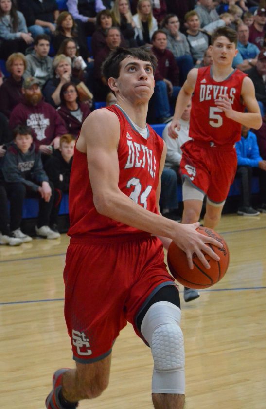 One of the few times the Red Devils looked efficient with the ball was early in the third quarter. Craig Bober scored St. C.’s first six points of the second half — the final three on a 3-point play — in trimming John Glenn’s lead to 36-28.